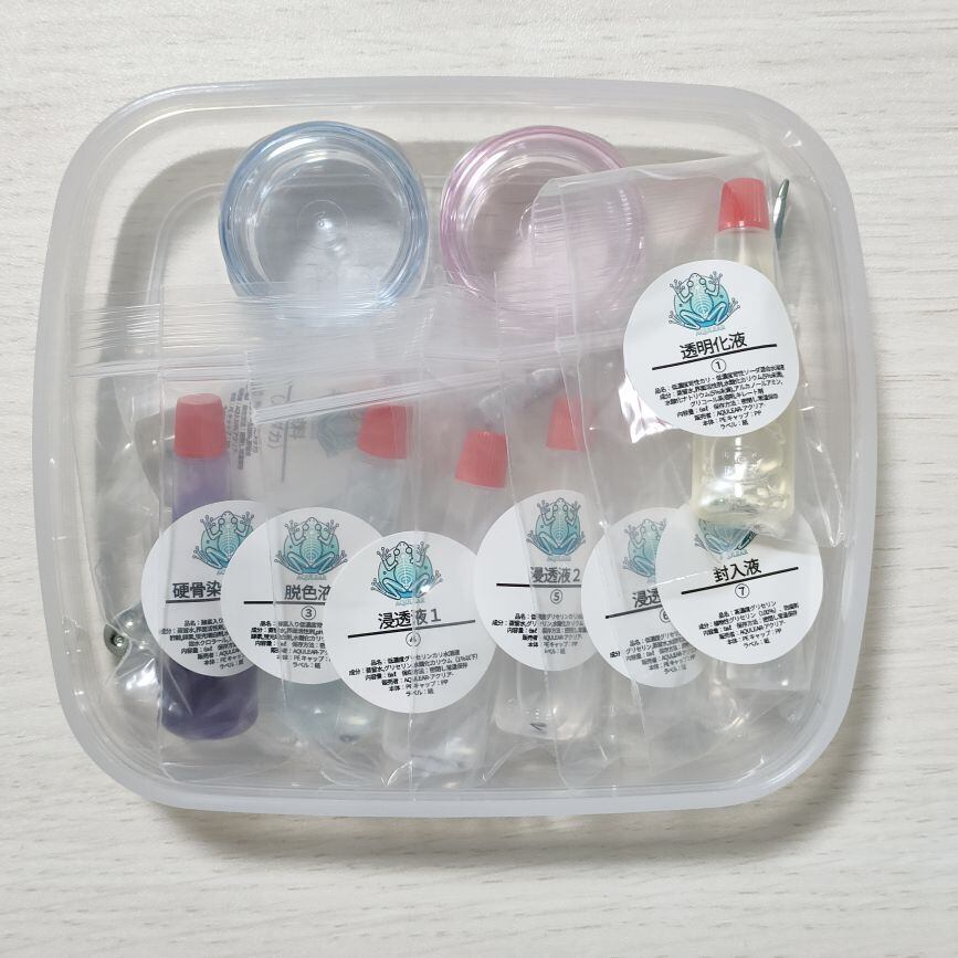 透明化液①が入っていた丸型容器は洗って乾かしておく。(各工程でも同様)
